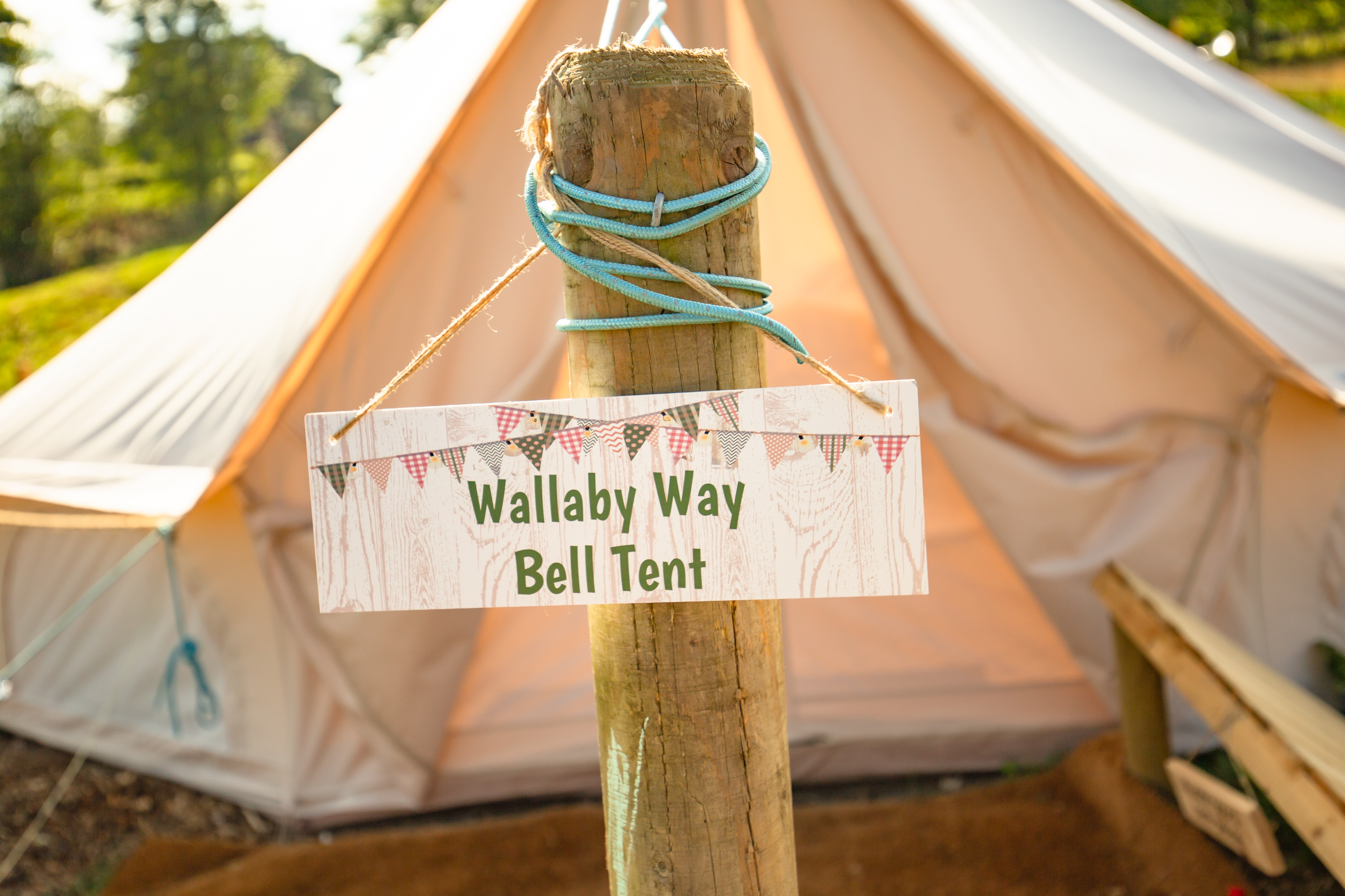 Our 6m bell tents are incredibly spacious and well equipped with a double bed, and up to 4 smaller singles with an outdoor kitchen area and bathroom with composting toilet.